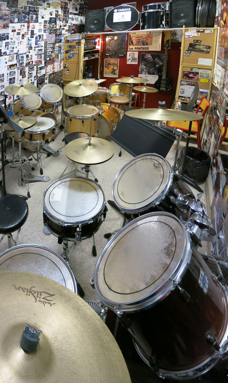 Les cours sont dispensés en salle tempo, équipée de 2 batteries Yamaha stage custom et d'une Pearl DLX PRO. Toutes les trois sont pourvues d'un kit complet de cymbales zidljan avedis. Cette salle dispose également d'une sono confortable en plus du matériel informatique et vidéo. La basse et son systeme d'amplification sont également à demeure pour le travail des rythmiques basse/batterie.